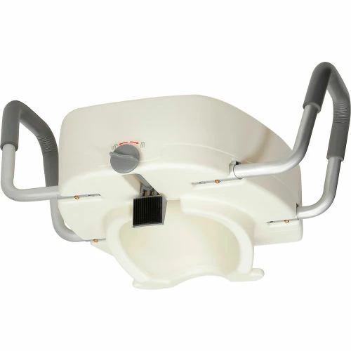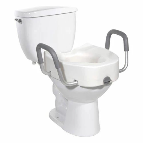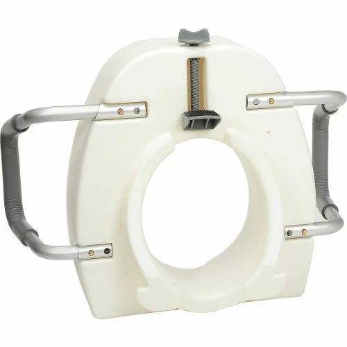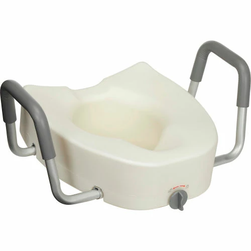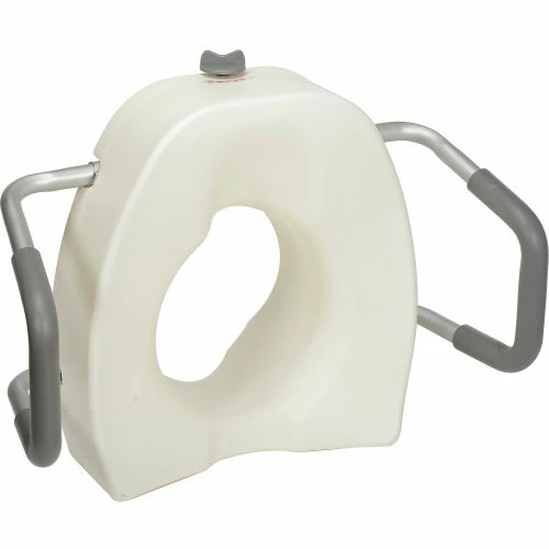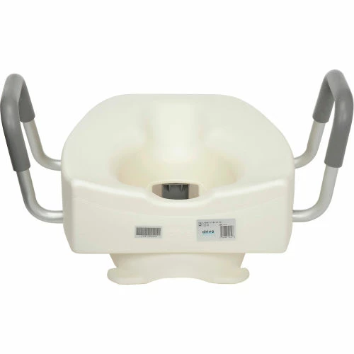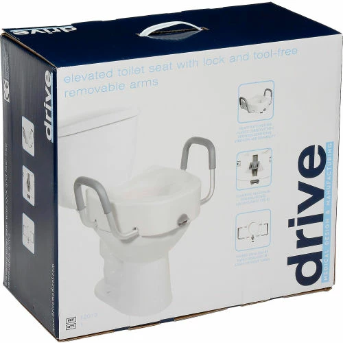 This Premium Elevated Toilet Seat with Lock by Drive Medical fits most elongated toilets. The lock ensures a tight fit providing additional safety and added feeling of security. A wide opening in the front and back allow for worry-free personal hygiene. The elevated seat and padded arms will help individuals who need a boost sitting down or standing up from the toilet. For consumers using a wheelchair, tool free removable arms allow for easy transfer to and from the raised toilet seat.