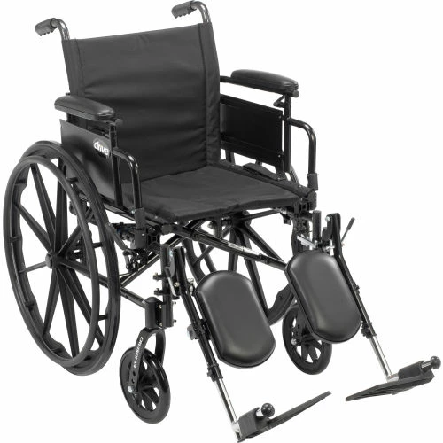 Don’t let mobility challenges keep you from getting out and experiencing all life has to offer. For many people, a manual wheelchair is the ideal solution to maintaining mobility independence. Manual wheelchairs are among the most commonly used mobility devices thanks to their versatility, functionality, ease of transport and low maintenance. The Cruiser X4 from Drive Medical offers all these features and much more. The Cruiser X4 is ultra-lightweight, yet extremely strong thanks to its aluminum and carbon steel frame which is specially designed to allow for custom seat backs and accessories and includes our patented adjustable-depth seat. The rear wheels can be quickly and easily moved between three separate axles to adjust the seat to the ideal height for the user or to angle the seat back. Other comfort adjustments include armrest height, seat back height and the height and angle of the front caster wheels – all allowing you to tailor the Cruiser X4 to your specific needs. The Cruiser X4 also offers push-to-lock wheel locks to make locking the rear wheels easy – even for those with less hand strength. The Cruiser X4 is available with adjustable height detachable desk arms and elevating leg rests (ELRs), which are a necessity if you suffer from a condition such as edema, phlebitis, varicose veins or just tired legs.