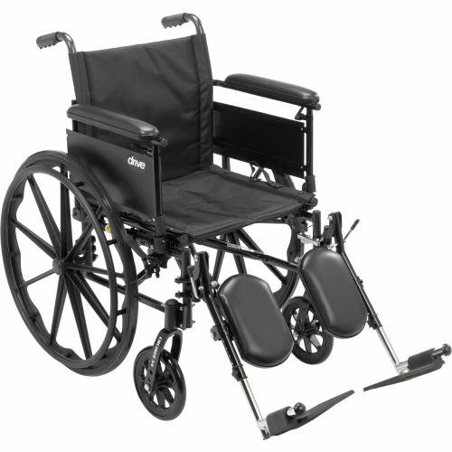 Don’t let mobility challenges keep you from getting out and experiencing all life has to offer. For many people, a manual wheelchair is the ideal solution to maintaining mobility independence. Manual wheelchairs are among the most commonly used mobility devices thanks to their versatility, functionality, ease of transport and low maintenance. The Cruiser X4 from Drive Medical offers all these features and much more. The Cruiser X4 is ultra-lightweight, yet extremely strong thanks to its aluminum and carbon steel frame which is specially designed to allow for custom seat backs and accessories and includes our patented adjustable-depth seat. The rear wheels can be quickly and easily moved between three separate axles to adjust the seat to the ideal height for the user or to angle the seat back. Other comfort adjustments include armrest height, seat back height and the height and angle of the front caster wheels – all allowing you to tailor the Cruiser X4 to your specific needs. The Cruiser X4 also offers push-to-lock wheel locks to make locking the rear wheels easy – even for those with less hand strength. The Cruiser X4 is available with adjustable height detachable full arms and elevating leg rests (ELRs), which are a necessity if you suffer from a condition such as edema, phlebitis, varicose veins or just tired legs.