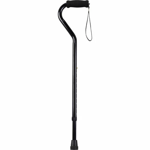 With the a very polished Black color and a soft foam grip, this deluxe cane with offset handle by Drive Medical is stylish, comfortable and functional. As an added bonus, a handy wrist strap attached to the handgrip will ensure that you are always in reach of your cane when you need it. The handle is ergonomically designed to reduce hand pressure allowing for increased stability, while the foam grip ensures added comfort. The handle adjusts from 28 1/2″ to 38 1/2″ in height and locks securely thanks to a metal lock-nut silencer. The sturdy, 1″ diameter anodized, extruded aluminum tube construction can withstand a 300 pound weight capacity. The product is protected by a limited lifetime warranty.