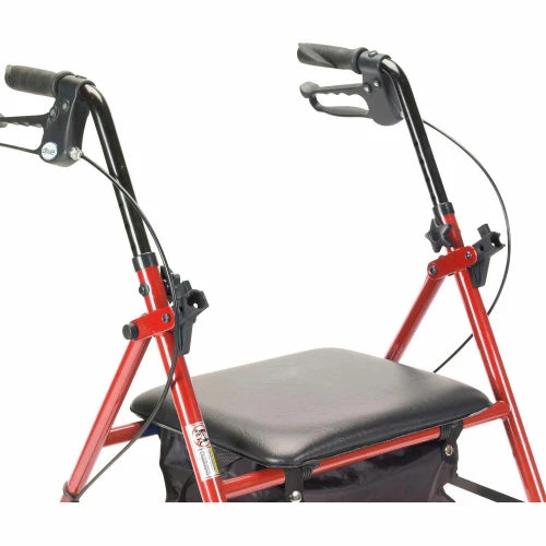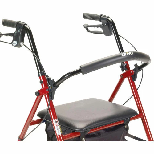 If you’re seeking a safe, convenient aid to improving your daily mobility, a Rollator can be the ideal solution. Wheels make a Rollator a superior option over a standard walker, eliminating the need to lift the device and allowing you to walk with an easy, smooth gait. Plus, Rollators are better for traveling over uneven, outdoor terrain, making them great for your active, busy lifestyle. And with the built-in seat found on a Rollator, you’ll always have a convenient place to rest. Drive’s Red Rollator with 6″ Casters is the perfect unit to suit your needs and your style. It’s designed and built for maximum comfort, durability and ease of use with quick folding ability and simple handle height and angle adjustment. It has a unique seamless padded seat for maximum sitting comfort and ease of care. The backrest is also padded and large soft grip wheels ensure smooth travel over a variety of different terrains. It even has a convenient, zippered pouch for privately and securely carrying items with you on the go. Enhance your mobility-and your quality of life-with a Rollator from Drive.