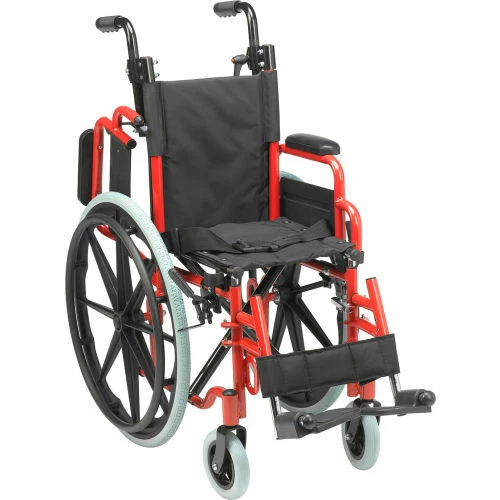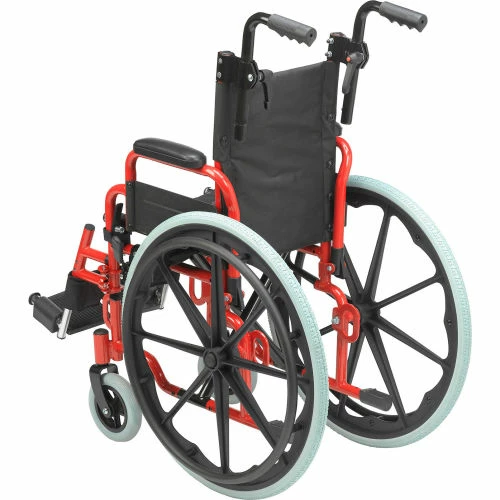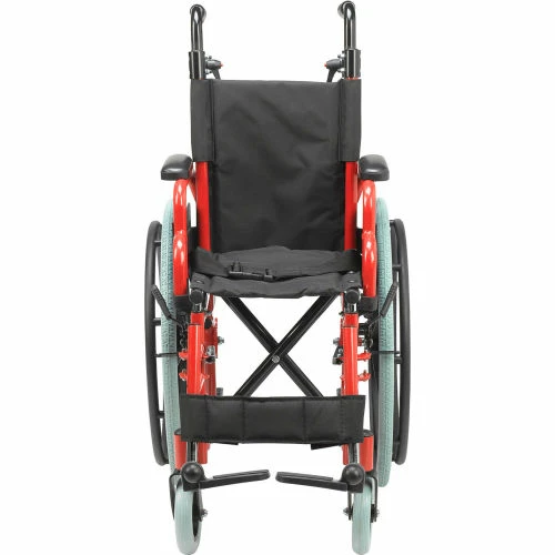 This foldable pediatric wheelchair provides mobility, comfort and safety. Perfect for an active user. The wheelchair offers flip-back padded desk arms, swing-away footrests, calf strap, pelvic belt, and adjustable height push handles as standard features. WC19 bus transit compliant for users between 50 and 80 lbs (standard transit brackets included).
