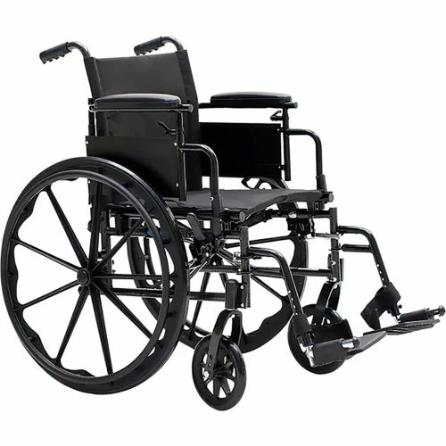 - Tool-free, adjustable, elevating leg rest or swing-away footrests with heel loops