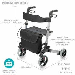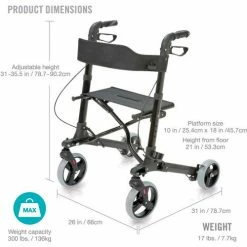 HealthSmart® Lightweight Gateway Aluminum Rollator, Titanium