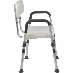 Flash Furniture Hercules Series Adjustable Height Bath Chair with Quick Release Back & Arms, White