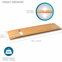 DMI Wooden Slide Transfer Board, 440 lb Capacity , 30 x 8 x 1, 2 Cut Out Handles